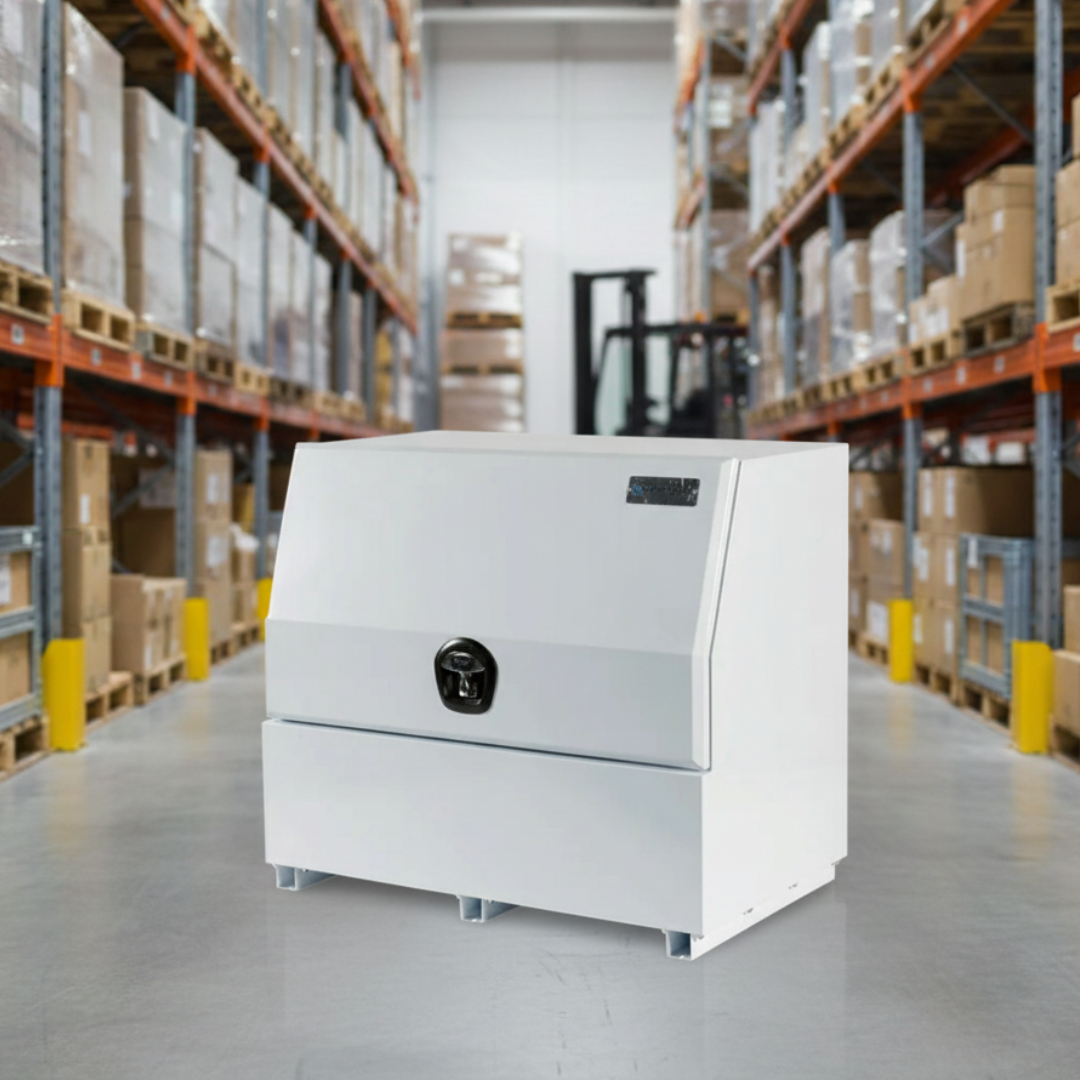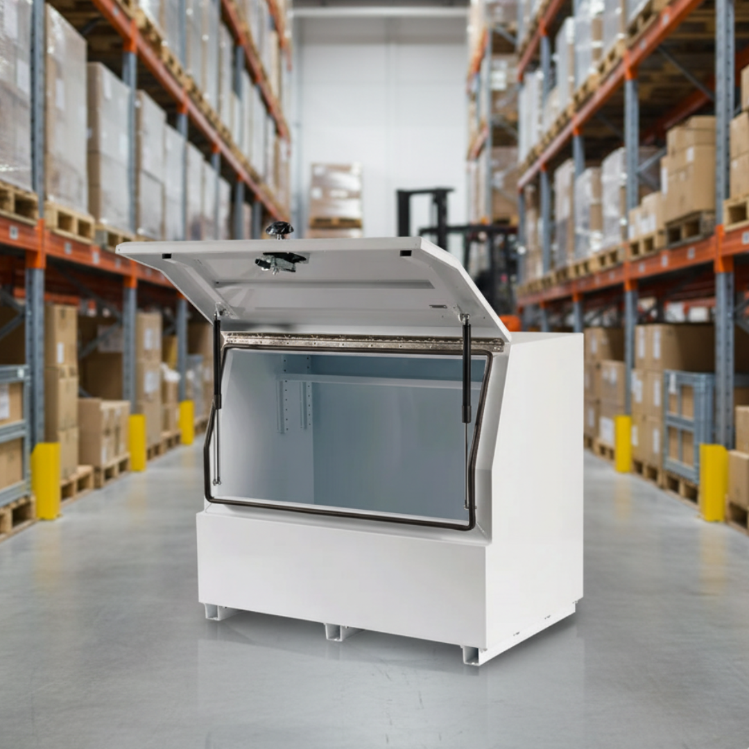 Upgrade your setup with the 850H Series half lid steel toolbox, built for secure, no-nonsense storage on utes, trailers, and work vehicles. Constructed from heavy-duty 1.5mm steel, this toolbox is designed to handle tough conditions while keeping your gear protected and organised. The half-height lid with gas struts allows for smooth, easy access, while the clean white finish delivers a professional look.