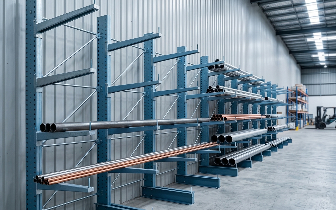 Cantilever racking is designed to store long, bulky, and oddly shaped items like timber, pipes, and steel. Its open-arm design makes loading and unloading easy, while customisable heights and arm lengths ensure it fits your needs. Built tough for industrial use, it’s ideal for warehouses and workshops. Available in powder coated and galvanised finish.